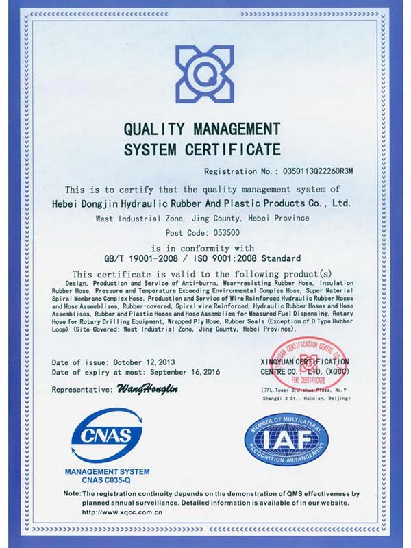 注冊資金7000萬,生產設備300多臺套,檢測設備300多臺件,膠管900萬標米,各類管件接頭2億余件,膠管組合件1億余套。